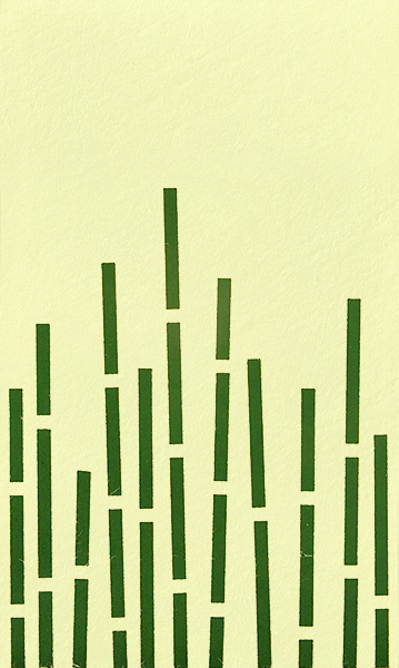 吉祥の「松竹梅」の竹は、松と梅を繋げる祝いの 中心です。そのめでたい竹が重なり合う竹林は、 よりめでたい形です。